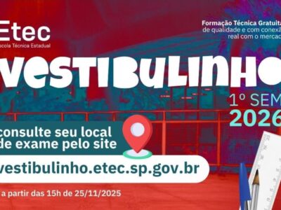 O Vestibulinho das Escolas Técnicas Estaduais (Etecs) para o segundo semestre está com inscrições abertas até dia 17 de maio, às 15 horas, exclusivamente pela internet. O valor da taxa para a participação no processo seletivo […]