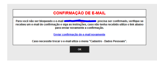 Aparecerá para você uma mensagem lembrando da validação de tal e-mail. Basta pedir o reenvio.